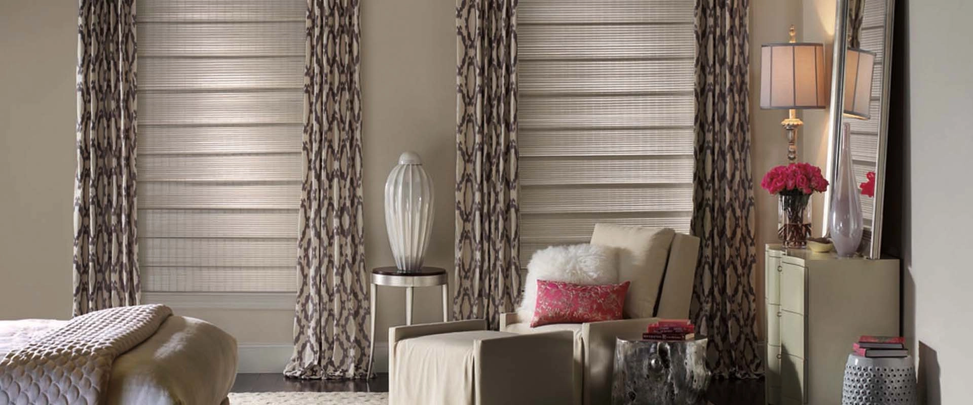 Drapery is one of the most sought-after window coverings today. Custom drapery allows you to create the perfect window fashion for your design needs. With variations in style, fabric, decorative trims, and size, drapery window treatments can be easily adapted to fit any room or any interior design. With an endless array of drapery hardware, colors, and fabric types such as silk, wool, cashmere, cotton, linen, faux silk, polyesters, chenille, vinyl, and lace, the options are truly endless.